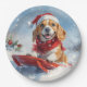 Beagle Hund in Sledge Lass es Schnee Weihnachten Pappteller