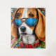 Der ultimative Retro-Stil, dieser Pupper mit feinem, farbenfrohen Tönen! Dieses spielerische Jungtier rockt eine übergroße Sonnenbrille mit einem hellrosa Rahmen, blauen Linsen und lila und orangefarbenen Akzenten.