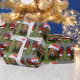 Beagle in der Weihnachtsmannmütze u. in der Geschenkpapier