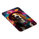 Ein spielerischer Beagle in einem pulsierenden, skurrilen Kostüm gekleidet vor einem glänzenden, magischen Hintergrund. Dieses bezaubernde Design ist perfekt für Tierfreunde.
