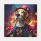 Ein spielerischer Beagle in einem pulsierenden, skurrilen Kostüm gekleidet vor einem glänzenden, magischen Hintergrund. Dieses bezaubernde Design ist perfekt für Tierfreunde.