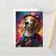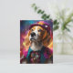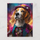 Ein spielerischer Beagle in einem pulsierenden, skurrilen Kostüm gekleidet vor einem glänzenden, magischen Hintergrund. Dieses bezaubernde Design ist perfekt für Tierfreunde.