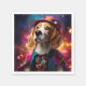 Ein spielerischer Beagle in einem pulsierenden, skurrilen Kostüm gekleidet vor einem glänzenden, magischen Hintergrund. Dieses bezaubernde Design ist perfekt für Tierfreunde.