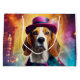 Ein spielerischer Beagle in einem pulsierenden, skurrilen Kostüm gekleidet vor einem glänzenden, magischen Hintergrund. Dieses bezaubernde Design ist perfekt für Tierfreunde.