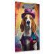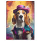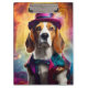 Ein spielerischer Beagle in einem pulsierenden, skurrilen Kostüm gekleidet vor einem glänzenden, magischen Hintergrund. Dieses bezaubernde Design ist perfekt für Tierfreunde.