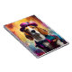 Ein spielerischer Beagle in einem pulsierenden, skurrilen Kostüm gekleidet vor einem glänzenden, magischen Hintergrund. Dieses bezaubernde Design ist perfekt für Tierfreunde.
