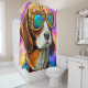 Beagle Sonnenbrillen über farbenfrohen Regenbogenfarben tragen.
