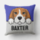 Ein personalisiertes Beagle-Kissen für Hundefreunde, mit einem niedlichen Beagle, der über eine Brücke schaut, und einem benutzerdefinierten Textfeld, in dem Sie den Hundenamen oder einen anderen Text eingeben können. Ein tolles Geschenk für jeden Beagle, egal ob Mama, Papa, Trainer oder Hundefreund.