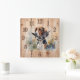 Holz sieht quadratische Wanduhr mit Jagdhund aus. Gute Uhr für einen Jäger. Es gibt ein passendes Kissen: https://www.zazzle.com/beagle_or_foxhound_hunting_dog_wood_look_throw_pillow-256514004066802557