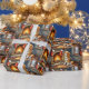 Beagle Sitting by Fireplace with Christmas Lights Geschenkpapier