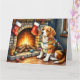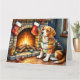 Beagle Sitting by Fireplace with Christmas Lights Karte