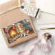 Beagle Sitting by Fireplace with Christmas Lights Rechteckiger Aufkleber