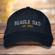 Beagle Vater bestickt Baseballkappe in einem silbergrauen Serif-Schriftart mit personalisiertem festem Datum.