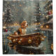 Set segelt mit dieser sehr detaillierten Abbildung in den Zauber der Urlaubssaison und zeigt einen stolzen Hund, der in einem festlich dekorierten Boot sitzt und über einen ruhigen Weihnachtssee gleitet. Die Lichter der nahen Kiefernbäume reflektieren das Wasser und warmen, festlichen Glanz, der das gemütliche Ambiente verstärkt. Die Ornamente versetzen sich von den Seiten des Bootes, während die Laternen leuchten und eine Szene schaffen, die das wahre Wesen der Weihnachtswärme und -freude einfängt. Dieses nostalgische Kunstwerk bringt eine Touch von Urlaubsmagie in jeden Raum, perfekt für diejenigen, die den Geist der Saison schätzen.