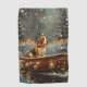 Set segelt mit dieser sehr detaillierten Abbildung in den Zauber der Urlaubssaison und zeigt einen stolzen Hund, der in einem festlich dekorierten Boot sitzt und über einen ruhigen Weihnachtssee gleitet. Die Lichter der nahen Kiefernbäume reflektieren das Wasser und warmen, festlichen Glanz, der das gemütliche Ambiente verstärkt. Die Ornamente versetzen sich von den Seiten des Bootes, während die Laternen leuchten und eine Szene schaffen, die das wahre Wesen der Weihnachtswärme und -freude einfängt. Dieses nostalgische Kunstwerk bringt eine Touch von Urlaubsmagie in jeden Raum, perfekt für diejenigen, die den Geist der Saison schätzen.