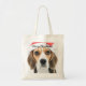 Niedlicher Beagle mit einer Weihnachtsmannmütze.