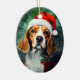 Buntes und fröhliches Weihnachtsdesign mit einem Beagle, der eine Weihnachtsmannmütze trägt.