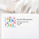 Adressetiketten mit einem lustigen und farbenfrohen Muster. Wissenschaftler schauen mit Beakern und Flaschen verschiedener Formen und Größen in hellen, fröhlichen Farben.