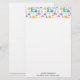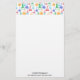 Stationery mit einem lustigen und farbenfrohen Muster. Wissenschaftler schauen mit Beakern und Flaschen verschiedener Formen und Größen in hellen, fröhlichen Farben.