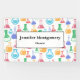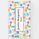 Business Banner mit einem lustigen und farbenfrohen Muster. Wissenschaftler schauen mit Beakern und Flaschen verschiedener Formen und Größen in hellen, fröhlichen Farben.