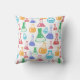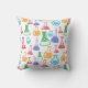 Ein Kissen mit einem lustigen und farbenfrohen Muster. Wissenschaftler schauen mit Beakern und Flaschen verschiedener Formen und Größen in hellen, fröhlichen Farben.