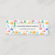 Mini Visitenkarten mit einem lustigen und farbenfrohen Muster. Wissenschaftler schauen mit Beakern und Flaschen verschiedener Formen und Größen in hellen, fröhlichen Farben.