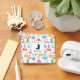 Personalisierter Schlüsselanhänger mit einem lustigen und farbenfrohen Muster. Wissenschaftler schauen mit Beakern und Flaschen verschiedener Formen und Größen in hellen, fröhlichen Farben.