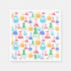 Papierservietten mit einem lustigen und farbenfrohen Muster. Wissenschaftler schauen mit Beakern und Flaschen verschiedener Formen und Größen in hellen, fröhlichen Farben.