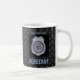Vor schwarzem Hintergrund zeichnet sich das metall aussehende Abzeichen ab. Ein subtiler Link ergänzt den Hintergrund. Perfekte Geschenkidee Tasse, um dem neuen Mitarbeiter in der Polizeiabteilung mit der Werbeaktion zu gratulieren.