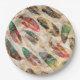 Trendy Feathers-Muster auf einem gereizten, Vintagen Papierhintergrund verleihen diesem Design eine erdige Boho-Atmosphäre