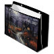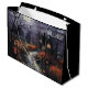 Halloween-Geschenktasche mit einer Wasserfarben-unheimlichen Halloween-Szene mit einem Spuk Haus und Fledermäusen, die über der mondbeleuchteten Herbstlandschaft herumschwirren. Glücklicher Halloween-Gruß oben rechts. Weitere Größen sind erhältich. Das Bild muss unter Umständen an unterschiedliche Größen angepasst werden.