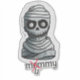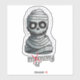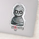 Dies ist ein niedlicher "Horror-thematischer" Halloween-Aufkleber mit einer Abbildung einer beängstigenden Mumie und einem Text "mommy" mit einem überkreuzten "o".