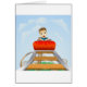 Cartoon eines jungen Jungen oder des Mannes, die auf einer Rollen-Untersetzerfahrt erschrocken schaut