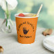 Achten Sie darauf, Ihre Gäste nicht mit diesen beängstigenden Halloween-Papiertassen zu erschrecken. Eine tote Hand reicht aus, um dir ein glückliches Halloween zu wünschen. Orangefarbene Becher mit einer kniffligen, zersetzenden Hand und bedrückten Schriften. Boo!