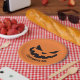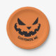 Diese leckeren orangefarbenen Halloween-Teller verfügen über eine cool lächelnde Kürbislaterne und einen eigenen personalisierten Text. Niedliches und beängstigendes Party.