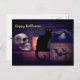 Beängstigende Schwarze Katze und Skull Happy Hallo Postkarte