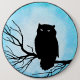 Beängstigende Vintage Eule mit Silberblauer Wasser Button