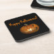 In diesem Untersetzer befindet sich ein Kürbis mit einem beängstigenden Gesicht und der orangefarbene Gruß "Happy Halloween". Ideal für Ihre Halloween-Partys.