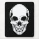 Kundenspezifisches schwarzes u. graues Grunge mousepad/mousemat mit einer ausführlichen beängstigenden gotischen grinsenden Schädelvektorillustration. - www.vectorportal.com - ein cooles u. fantastisches ursprüngliches Geschenk für Jugendjungen und goths!