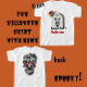 Dieses lustige Halloween-Shirt hat einen gruseligen Grabstein, eine Fledermaus, die gegen einen blutroten Vollmond fliegt, einen Schädel mit Feueraugen und eine haarige, schwarze Witwenspinne. RIP wird in den Grabstein geschnitzt. Unter der gruseligen Szene befindet sich eine Vorlage für den Namen Ihres Kindes. Auf der Rückseite des T - Shirt befindet sich ein weiterer erschreckender menschlicher Schädel.