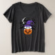 Halloween Beängstigender Kürbis mit einer weißen Kätzchen und Hexen Plus T - Shirt Kleidung & Schuhe > Frauen > Kleidung > Plus Größe