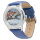 Kinderuhr aus Edelstahl mit blauem Lederarmband