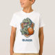 Dieser personalisierte T - Shirt für Kinder bietet einen lustigen und beängstigenden trex Dinosaurier, der Basketball spielt.