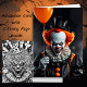 Beängstigende farbenfrohe psychedelische Comic-Stil Clown mit einem Ballon Halloween-Karte. Mit Innen-Pun und Färben Seite.