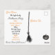 Spooky Kostüm Halloween-Party Postkarte Einladungen mit Kürbissen und ein beängstigend gotisches Mädchen in den spukhaften Wäldern mit einem Jack-o-Laterne.
