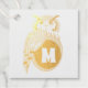 Eine Abbildung einer beängstigenden Brustkeule, die aus der Seitenansicht gezeichnet wurde. Der Vogel schaut über seine Schulter. Unter dem Eulenflügel befindet sich ein vergrößertes Auge, das als Rahmen für ein Monogramm dienen soll. Das M ist für Monogramm kurz und kann für Ihre Initialen personalisiert sein.