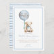 Laden Sie Liebhaber ein, um Ihre kleine Keule mit dieser bezaubernden "We Can Bearly Wait" Baby Dusche Einladung zu feiern. Es ist mit einem sanften Teddybär in Aquarellfarbe, blauem Eukalyptus-Ballon und pastellfarbenen Streifen gestaltet und ist eine süße und stilvolle Wahl für eine Babydusche. Vollständig anpassbar mit Namen, Ereignisdetails und Registrierungsinformationen.