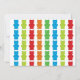 Ein gummibebener Bär, die Einladung eines Kindes zum Geburtstag mit acht gummiartigen Bären auf der Vorderseite. Die Einladung hat ein Muster gummier Bären auf der Rückseite. Alle Wörter können angepasst werden.