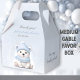 Wir können früh warten mittlere Gable Gefälligkeitsboxen für die Baby-Dusche im Winter in blau, weiß und grau, mit dem niedlichen Eisbär. Sie können aus 3 Größen dieser Gable-Gefälligkeitsboxen wählen. Kate Eden Art verlasst einfach den Text oder eine Leerstelle