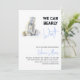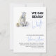 Aquarellbärenmädchen mit kleinen Bären und alle Bärenfamilie auf der Rückseite und Kalligraphie-Skript-Phrase "We can Bearly Wait!" in Weiß und Blau. Großartige Themenideen für das Boy Baby Shower Party. Einfach mit Ihrem Text personalisieren. Matching Artikel und andere Winter Baby Dusche lädt mit diesem Design finden Sie in der Polar Bären Kollektion in meinem Shop PatternDigitPics. Wenn Sie besondere Wünsche haben, senden Sie mir bitte eine E-Mail an: t.dyomushkina@gmail.com